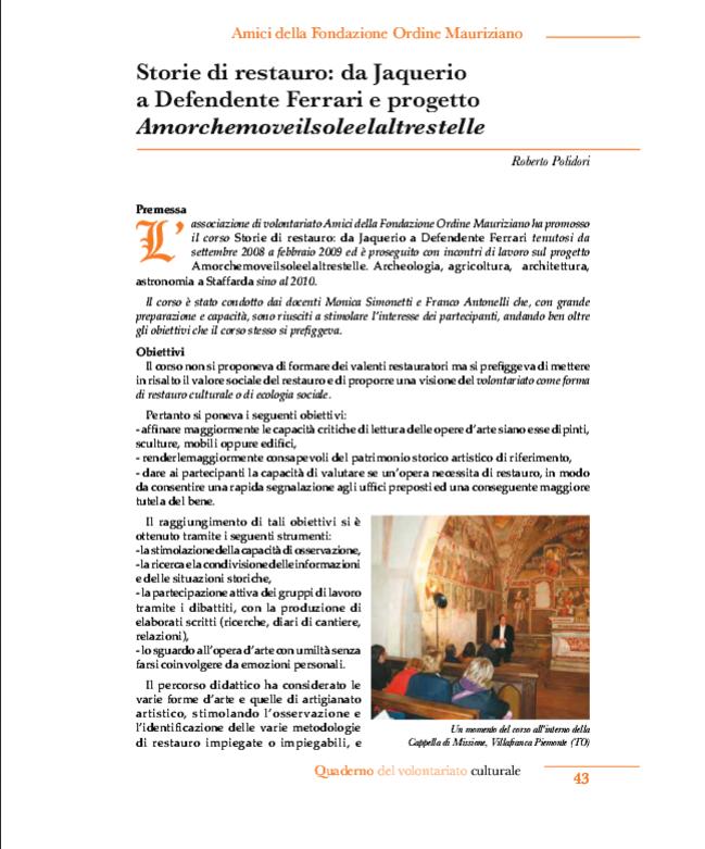 Studi e Ricerche ESEGESI DELL’ORDINE DEI SANTI MAURIZIO E LAZZARO, di Edoardo Rotunno.Leggi tuttoLA PHARMACOPOEA TAURINENSIS, 1736, di Angela Crosta.Leggi tuttoIL CORO LIGNEO DELL’ABBAZIA DI STAFFARDA, di Angela Crosta.Leggi tutto“IL LUNGHETTO: un ricettario della farmacia dell’Ospedale Mauriziano di Torino degli ultimi decenni del XVII secolo”Leggi tuttoITINERARI MICAELICI: dalla Sacra di San Michele alla Precettoria di Sant’Antonio di Ranverso, a cura di Feliciano Della MoraLeggi tuttoAngela Crosta. Sant’Antonio abate affidò la sorella a un “convento”?Leggi tuttoAngela Crosta. Gli scorpioni di Ranverso.Leggi tuttoLE TERAPIE DEGLI ANTONIANI di Angela Crosta.Leggi tutto“L’ICONOGRAFIA DELLA FIGURA DI SANT’ANTONIO ABATE”, a cura di Angela Crosta.Leggi tuttoMuseo Virtuale ODDONE PASCALE, a cura di Angela Crosta.Leggi tuttoITINERARI PIEMONTESI PER VEDERE LE OPERE DI DEFENDENTE FERRARILeggi tuttoODDONE PASCALE A REVELLO ED A STAFFARDA – videoLeggi tuttoI polittici di ODDONE PASCALE a SALUZZO e a FINALBORGO e le tele conservate a PORTOFINOLeggi tuttoDr Giorgio M Baratelli. Il Fuoco di Sant’Antonio.Leggi tuttoREVELLO (Cn). Collegiata, Altare della Ss. Trinità, di Oddone Pascale.Leggi tuttoREVELLO. Collegiata, Altare di Santa Croce, di Oddone Pascale.Leggi tuttoREVELLO, Abbazia di Staffarda, Macchina d’altare di Oddone Pascale.Leggi tuttoLE FIGURE DEGLI APOSTOLI NELLE ULTIME CENE, di Angela Crosta.Leggi tuttoI “BANCHETTI NELL’ARTE SACRA”, a cura di Angela Crosta.Leggi tuttoGLI INTRUSI NELLE “ULTIME CENE”, a cura di Angela Crosta.Leggi tuttoL’APPARECCHIATURA DELLE TAVOLE NELLE “ULTIME CENE”Leggi tuttoLe immagini di SANT’ANTONIO abate a RANVERSO.Leggi tuttoMUSEO VIRTUALE ULTIMA CENA – un “percorso temporale”.Leggi tuttoREVELLO (Cn), fraz. Staffarda. Abbazia di Santa Maria, Ultima Cena.Leggi tuttoTORINO. Una chiesa nascosta sotto i portici di via Po.Leggi tuttoPreghiera del “Campagnin”.Leggi tuttoAA.VV. L aquasantiera della chiesa di Santa Maria di Staffarda.Leggi tuttoEdoardo ROTUNNO: ORDINE DEI SS MAURIZIO E LAZZAROLeggi tuttoL’ORDINE ANTONIANOLeggi tuttoDal QUADERNO DEL VOLONTARIATO CULTURALE N. 6 – Maggio 2006Leggi tuttoDal QUADERNO DEL VOLONTARIATO CULTURALE N. – 11 – Dicembre 2011Leggi tuttoStorie di Restauro: da Jaquerio a Defendente FerrariLeggi tuttoARCHEOLOGIA, ARCHITETTURA, AGRICOLTURA, ASTRONOMIA A STAFFARDALeggi tuttoDal QUADERNO DEL VOLONTARIATO CULTURALE – Numero 2 – Aprile 2002Leggi tutto